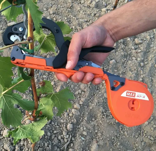 La atadora MAX-Tapener HT-R2 automatiza el proceso de tutorado, reduciendo drásticamente tiempo y costo de mano de obra.