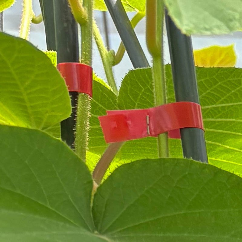 Cinta de polietileno virgen con aditivos anti-UV para tutorado agrícola. Elasticidad justa para acompañar el crecimiento del tallo sin marcar ni estrangular. Responde bien a ciclos largos bajo sol y humedad.